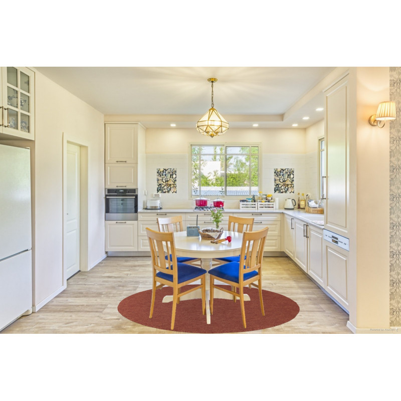 Kruhový koberec Astra v barvě terra je ideální volba do prostorů s vyšší zátěží, snese denní užívání v obývací pokoji, tak též je vhodná do kanceláře. Smyčkový nízký vlas zaručí stálost, snadnou údržbu a čištění, pro které lze použít i robotický vysavač. Koberec je po celém obvodě obšitý chemlonovou nití. Máte možnost si vybrat z velké škály velikostí.