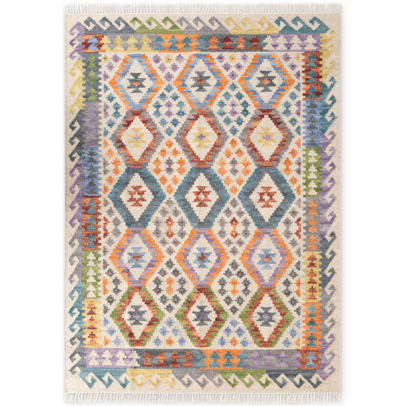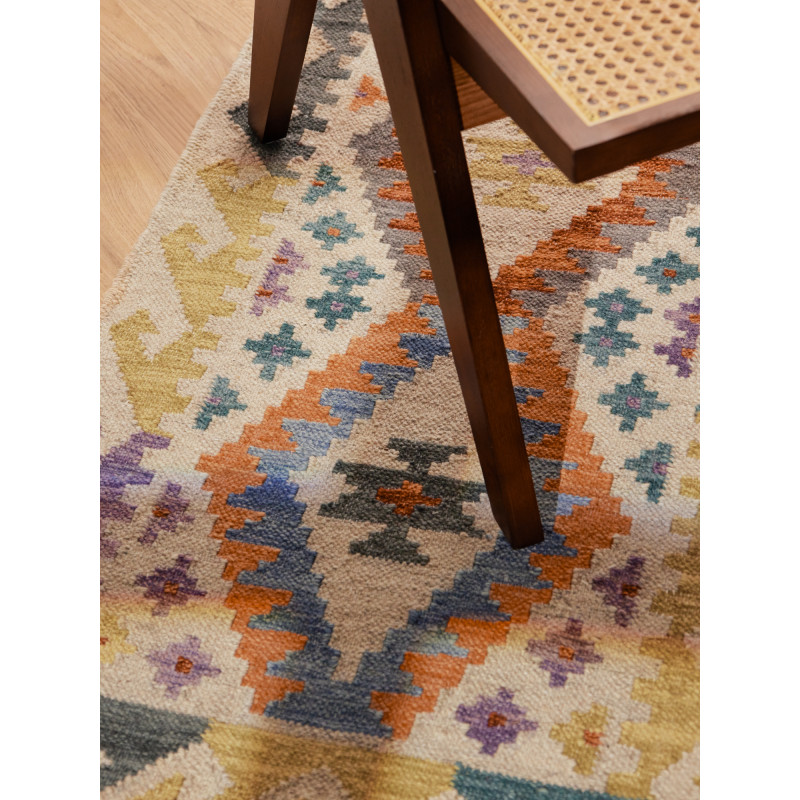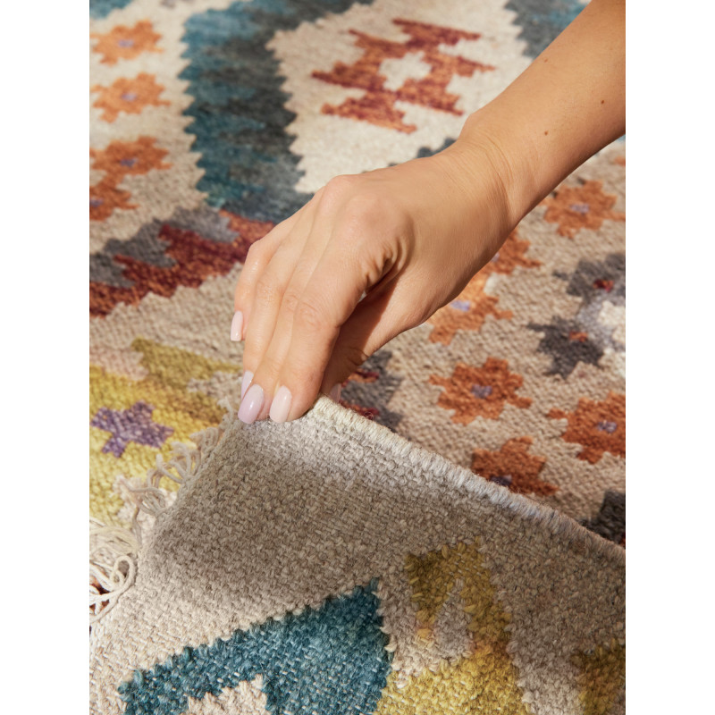 Ručně tkaný koberec Kamal Oasis v pestrých barvách spojuje tradiční afghánský styl s udržitelným přístupem. Kombinace vlny a bavlny zaručuje odolnost, měkkost a snadnou údržbu. Nízký vlas, jemné třásně a výrazný vzor z něj dělají osobitý doplněk do obýváku, ložnice i jídelny.