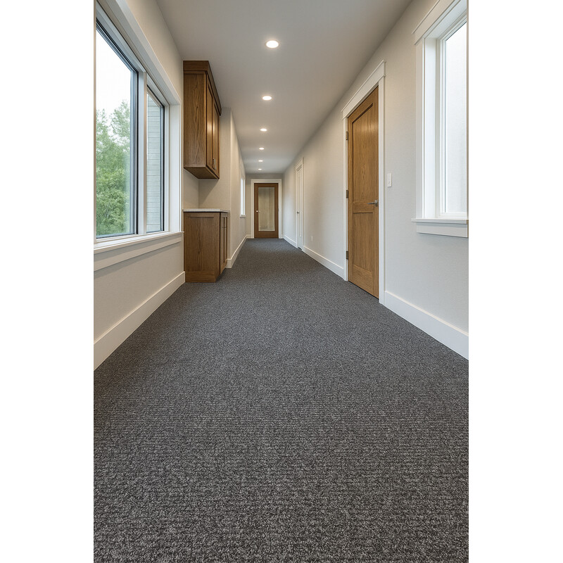 Tento šedočerný koberec z řady Novelle 73 je pro každého, kdo má v domě podlahové vytápění. Dlouhodobá životnost a nenáročná údržba je zaručena, díky materiálu ze kterého je vyroben. Jedná se o 100% polypropylenová vlákna. Jednobarevný design působí velice příjemně a je moderní. Podkladem u tohoto koberce je heavy filc.