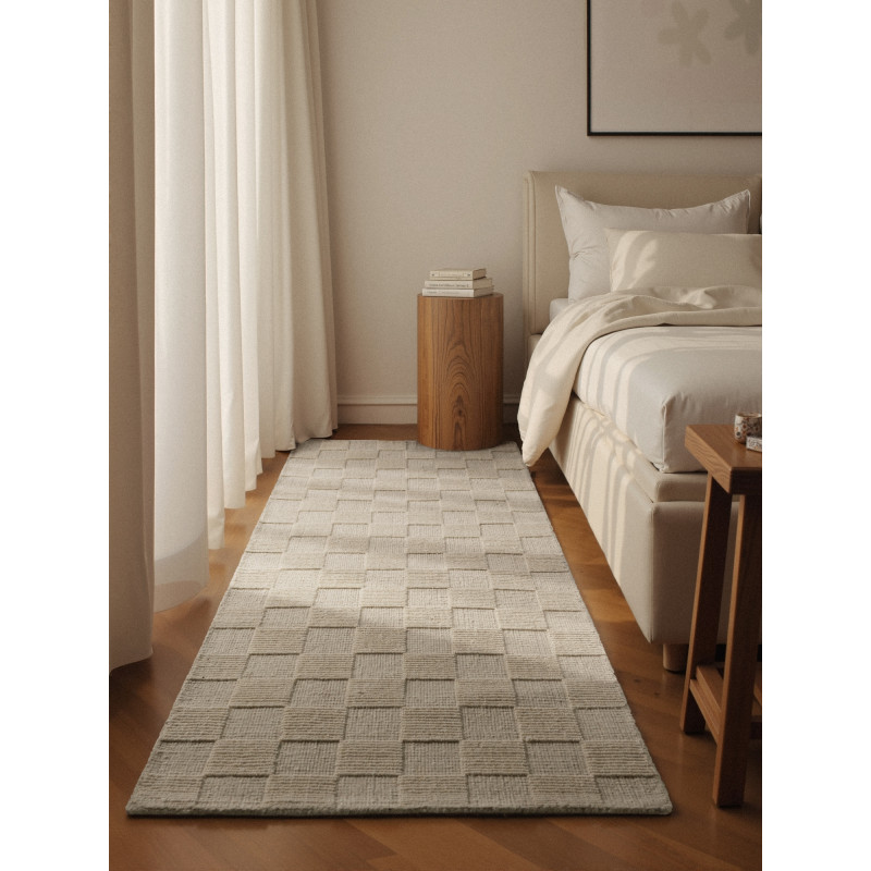 Bílý běhoun se čtvercovým 3D vzorem připomíná šachovnici a do interiéru vnáší moderní a čistý vzhled. Je ručně tkaný z prvotřídní vlny, což mu dodává přírodní charakter a výjimečnou odolnost. Jemná textura působí sofistikovaně a současně poskytuje praktické výhody, jako je tepelný komfort a zvuková izolace. Díky snadné údržbě a univerzálnímu designu se...