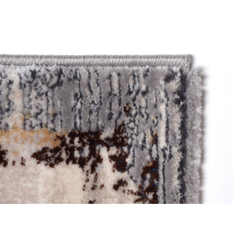 Béžovo-šedý koberec, který je po obvodu doplněn různobarevnými skvrnami. Tento krasavec bude slušet každé moderní domácnosti a jistě si ho oblíbíte nejen pro jeho vzhled, ale i pro jeho příjemný dotek a došlap. Vyrábí se totiž z jemného polyesteru, což je zároveň odolný a lesklý materiál.