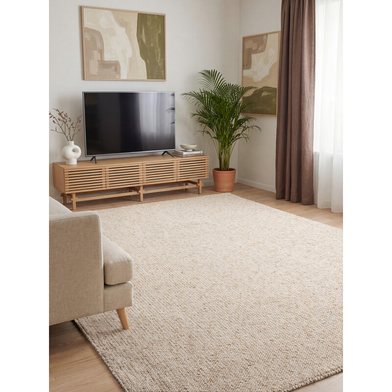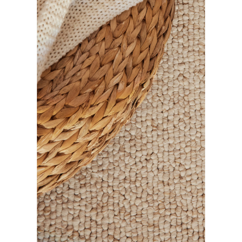 Kusový koberec v elegantní béžové barvě je skvělou volbou pro každý interiér. Polypropylenová vlákna zaručují praktickou údržbu a vysokou odolnost i v rušném domácím provozu. Spodní vrstva z juty zabraňuje posunu koberce po podlaze. Hodí se zejména do obývací pokoj, kde vynikne jeho styl a funkčnost.