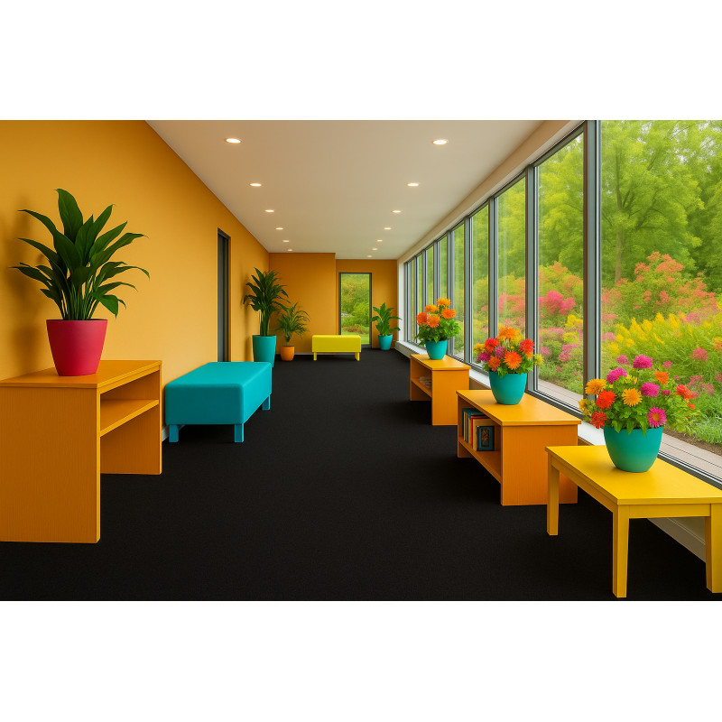 Metrážový koberec Wembley je jedinečný travní koberec v černé barvě s bílošedými vlákny. Má vpichovaný nízký vlas, který mu propůjčuje jednoduchou údržbu a čištění pomocí vysavače, což se ve venkovním prostředí velmi hodí. Uplatnění nalezne nejen venku, ale též ve vnitřních prostorech. Pro snadný odvod vody z koberce slouží nopy na spodní straně. Jsou to...