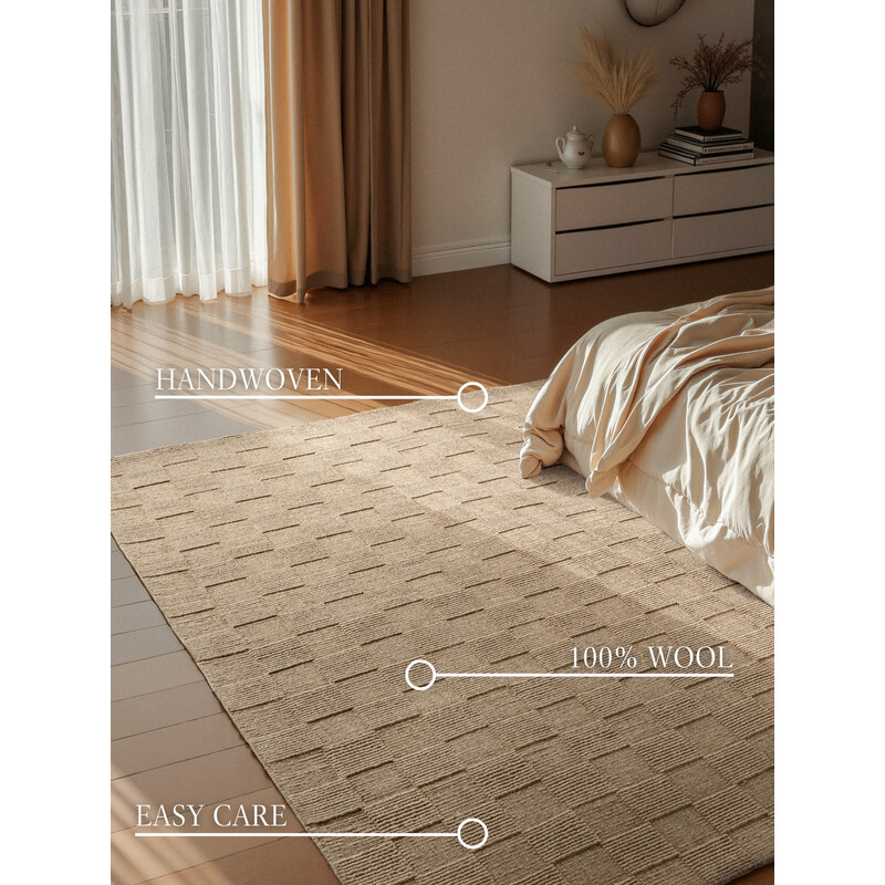 Hnědý koberec s výrazným čtvercovým vzorem v 3D provedení zaujme svým strukturovaným povrchem, který připomíná šachovnici. Teplý odstín hnědé vnáší do interiéru přirozenou eleganci a harmonii, zatímco ručně tkané zpracování z prvotřídní vlny zaručuje kvalitu i dlouhou životnost. Díky své robustní a přesto jemné textuře působí útulně a zároveň prakticky –...
