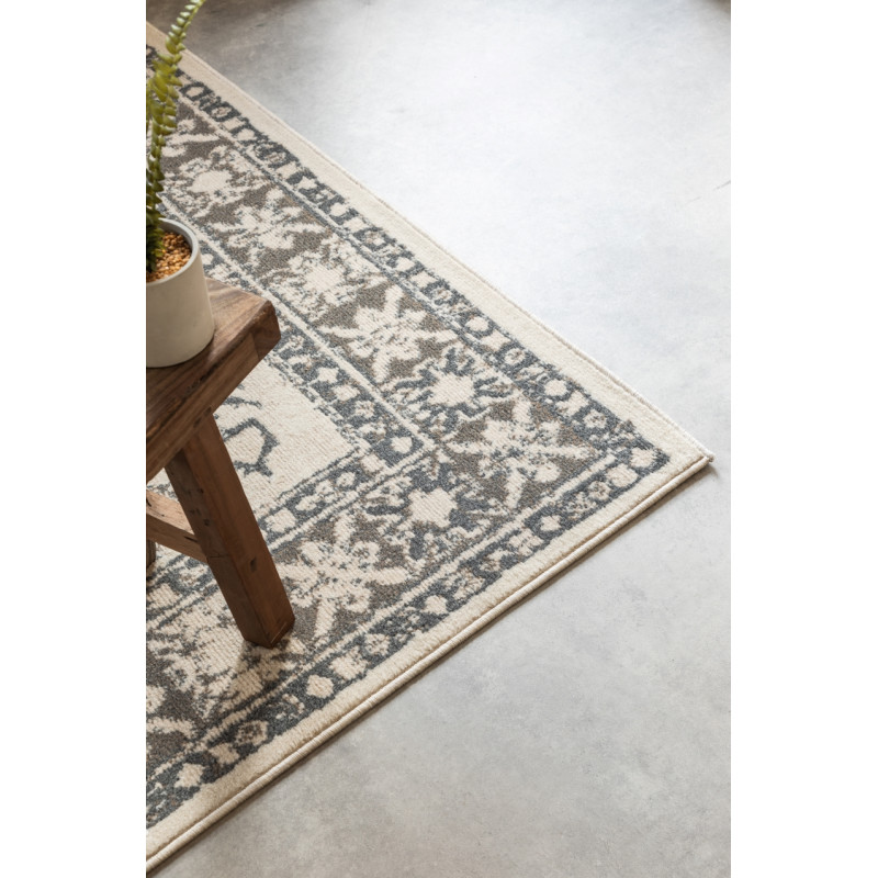 Šedo-béžový koberec s propracovaným středovým medailonem se díky své neutrální barvě snadno snoubí s jakýmkoliv nábytkem. Vyrábí se z polypropylenu a má středně vysoký střižený vlas. Díky těmto parametrům je měkký a příjemný na dotek i došlap, což Vaše chodidla nejlépe ocení u postele nebo pohovky.
