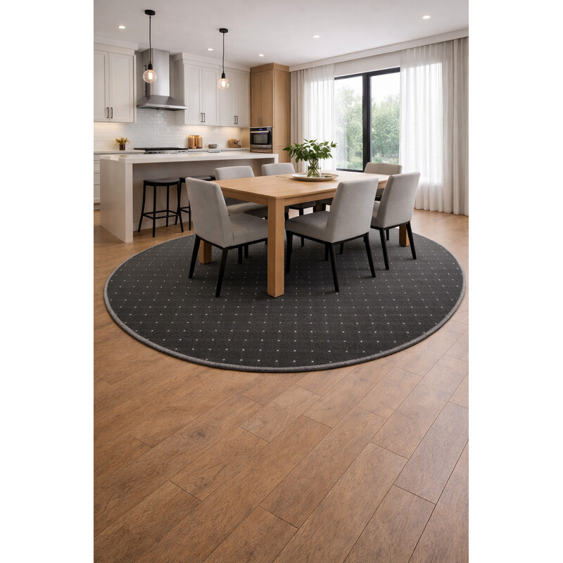 Eton koberec kulatý je černý, barva je sytá a není v ní šedá. Jedná se o plně černou barvu (obrázek může trochu zkreslovat). V mnoha rozměrech s možností objednání si svého vlastního vyžádaného rozměru na zakázku.