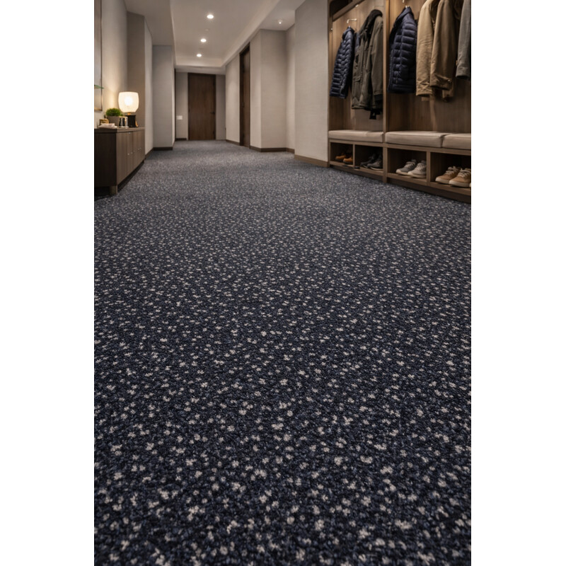 Saturnus v tmavě modré barvě se střiženým vlasem působí luxusním dojmem, který podtrhne charakter každého prostoru. Jemný vzor drobných teček rozbíjí jednolitost a dodává černému provedení originální šmrnc. Praktické vlastnosti koberce Saturnus oceníte nejen v domácnosti, ale především v komerčních a kancelářských prostorech. Koberec snadno zvládne...