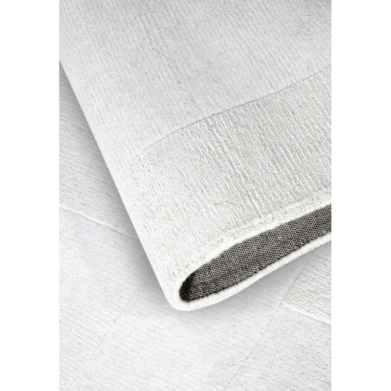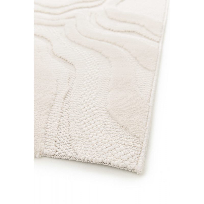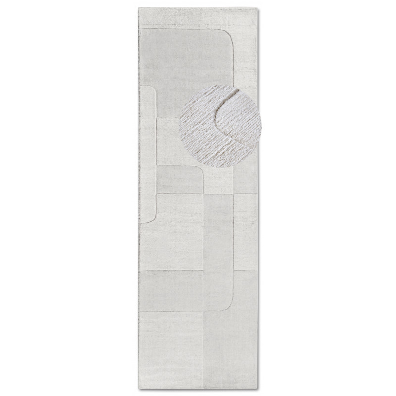 Běhoun v krémově bílé barvě s geometrickým 3D vzorem okamžitě upoutá svým moderním a elegantním vzhledem. Jeho středně vysoký vlas je neuvěřitelně příjemný na dotek, což oceníte při každém kroku. Navíc, díky ručnímu tkaní metodou hand-loom a preciznímu obšití, je nejen krásný, ale také odolný a vhodný i pro podlahy s vytápěním.