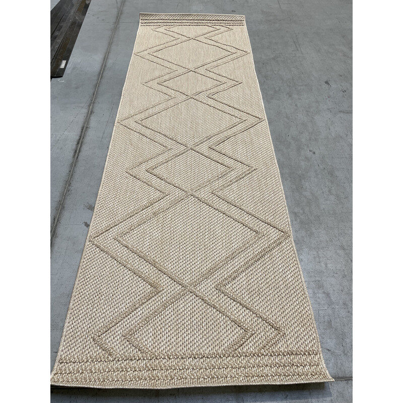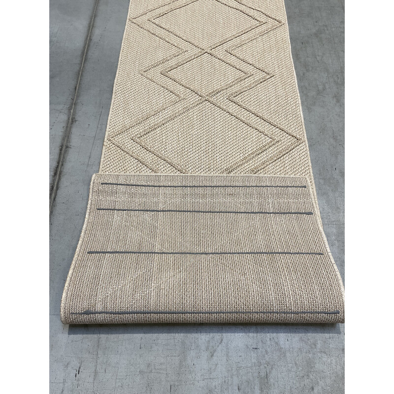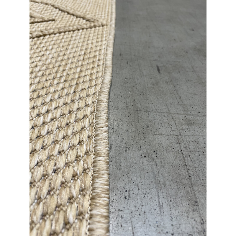 Poškození: Křivý okraj na jedné straně. Koberec má protiskluzovou úpravu.Venkovní koberec v béžové barvě se třemi kosočtverci uprostřed a třemi lemujícími pruhy na kratších stranách. Tento povedený kousek se může pyšnit 3D efektem, který zajišťuje kombinace různě vysokému smyčkového vlasu. Mezi další přednosti patří odolnost, snadná údržba či antistatická...