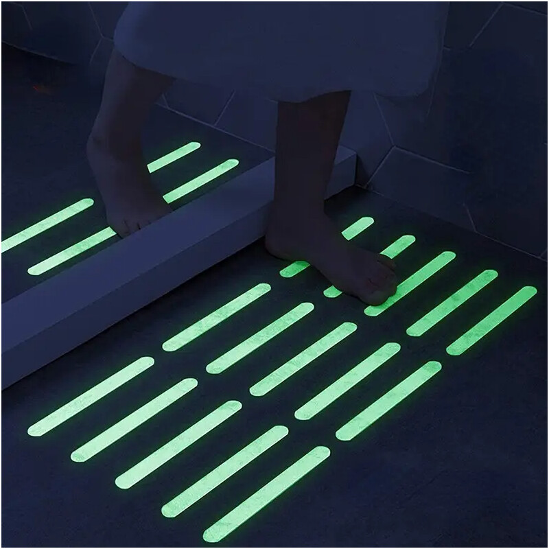 Protiskluzová páska s luminiscenčním pruhem, která po nasvícení jemně září ve tmě a zvyšuje bezpečnost při pohybu po schodech. Hrubý povrch okrajů spolehlivě brání uklouznutí a pevná samolepicí vrstva na spodní straně zaručuje, že páska drží přesně tam, kde má. Ideální řešení pro domácnosti i veřejné prostory, kde se bezpečnost potkává s nenápadnou elegancí.