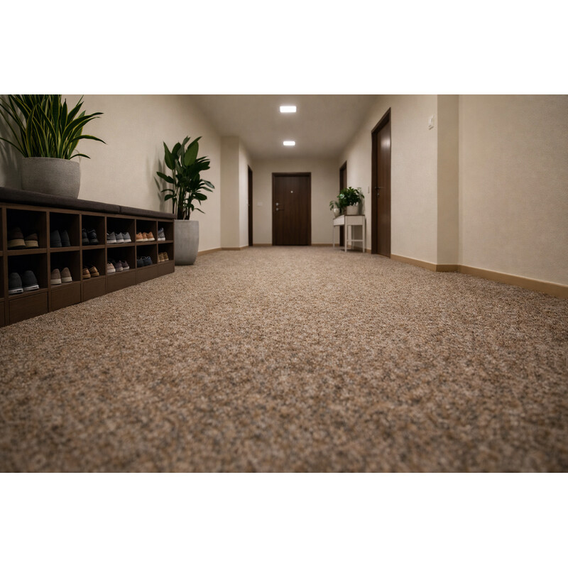 Metrážní koberec ze 100% polypropylenu, který do Vaší domácnosti vnese hřejivou atmosféru. Můžete ho položit i do zatěžovanějších místností nebo na schody. Díky krátkému smyčkovému vlasu je totiž odolný a snadno udržitelný. Další výhodou je kompatibilita s podlahovým topením či efektivní útlum kročejového hluku.