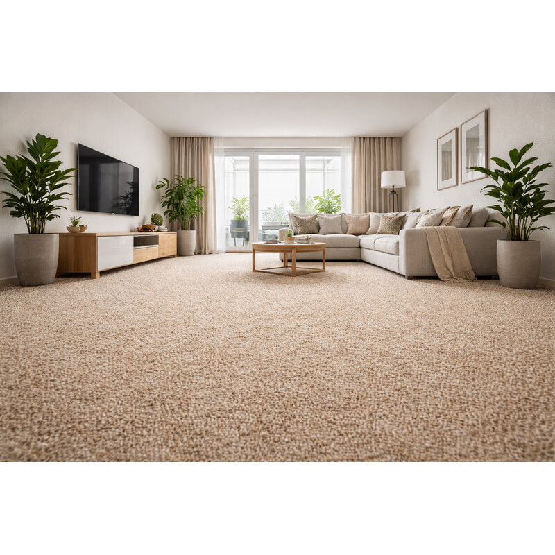 Béžový metrážový koberec Spring 6410 je vyroben ze 100% polyamidu a má krátký smyčkový vlas. Proto se jedná o pevnou a odolnou podlahovou krytinu, která je zároveň měkká při došlapu. Na rubové straně je filcová podložka, která efektivně izoluje chlad. Mezi další výhody patří snadná údržba či kompatibilita s podlahovým topením.