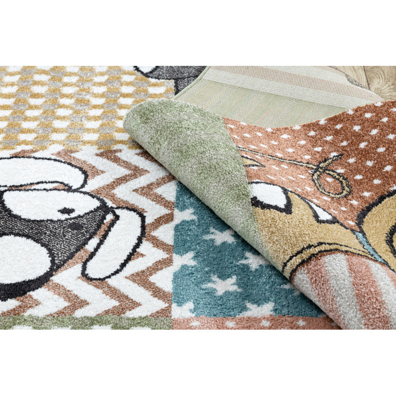 Dětský kusový koberec Fun Polar cream je zábavný a pestrý. Díky příjemným barvám z útulní každý dětský pokojíček. Největší předností je velmi jemný střižený vlas ze 100% polypropylenu, ten koberci dává měkkost a jemnost. Tento typ materiálu též má výbornou teplotní izolaci, nemusíte se už bát chladu z podlahy. Na výrobu nebyla použitá žádná toxická látka...