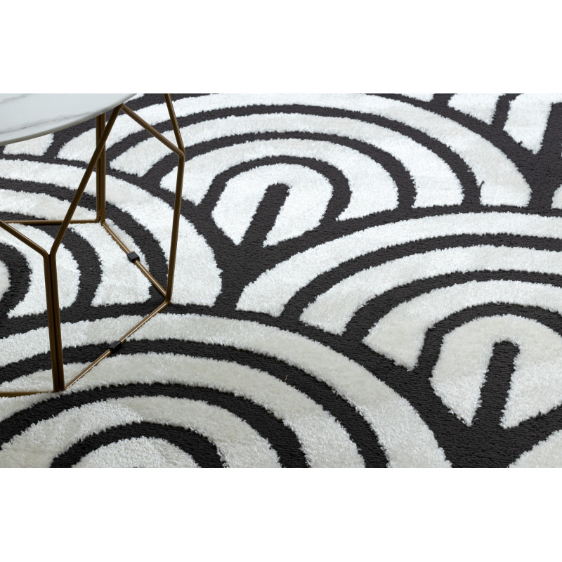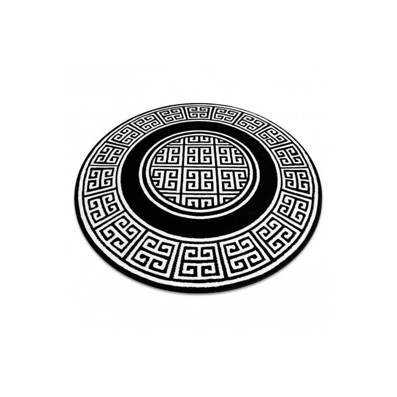 Kruhový koberec Gloss s řeckým motivem v černé barvě se slonovinovým vzorem. Tento velmi zajímavý a atypický koberec se stane estetický středobod místnosti. Tento typ koberce se velmi bude hodit do interiéru s mramorovou dlažbou v moderním stylu. Díky použitému materiálu je koberec stálý a odolný. Vlákna vlasů jsou tvořeny do 3D efektu, který umocňuje...