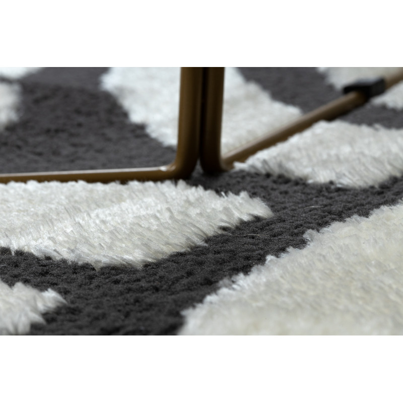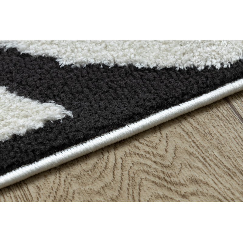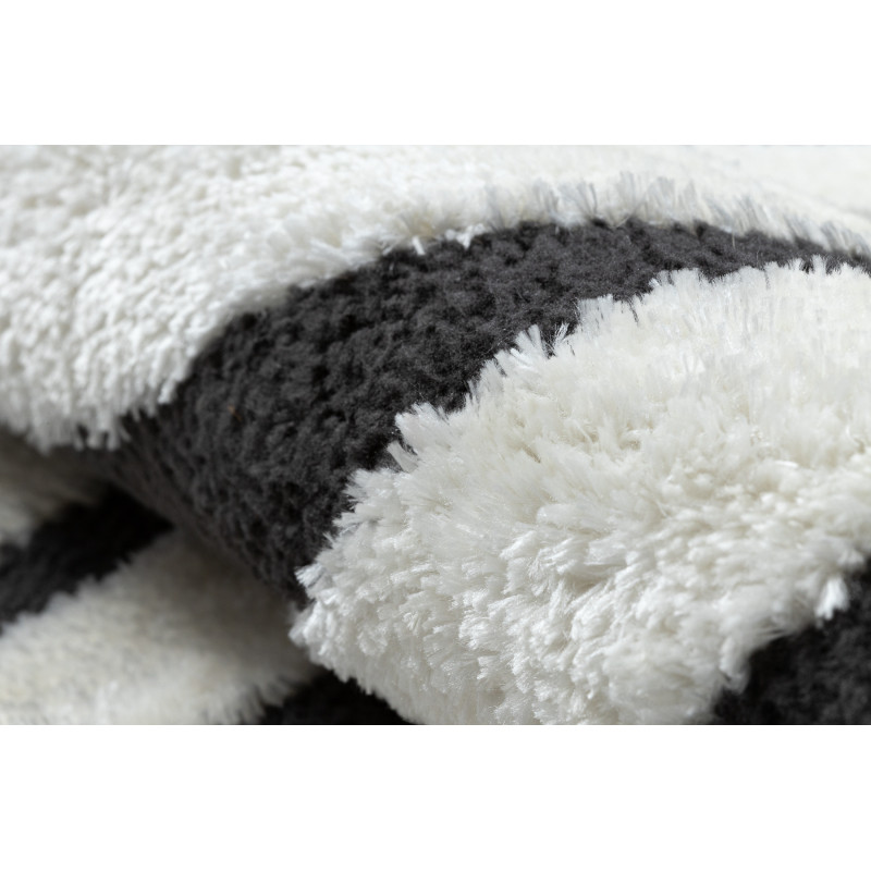 Černý koberec s bílými liniemi, které vytváří kosočtverce, dodá komfort každé domácnosti. Vyrábí se z hebkého polyesteru a má vysoký vlas typu shaggy. Proto si Vás získá měkkým povrchem a skvěle se hodí především do ložnice k posteli nebo do obývacího pokoje k pohovce. Kromě hravého geometrického motivu se koberec může chlubit žebrováním, které vytváří 3D...