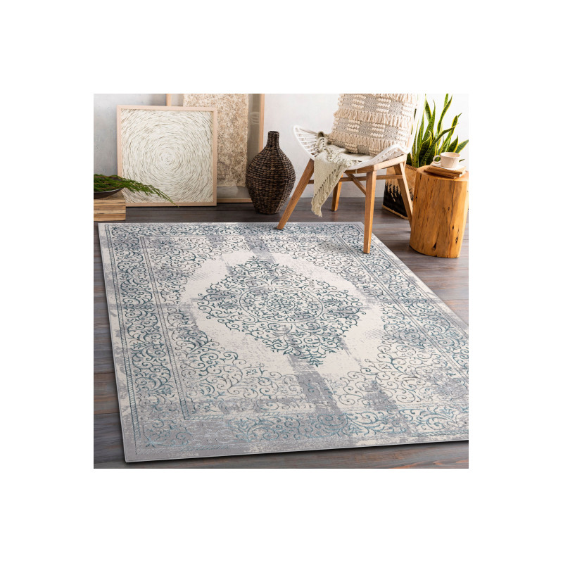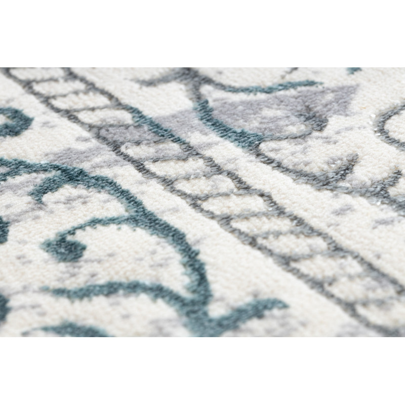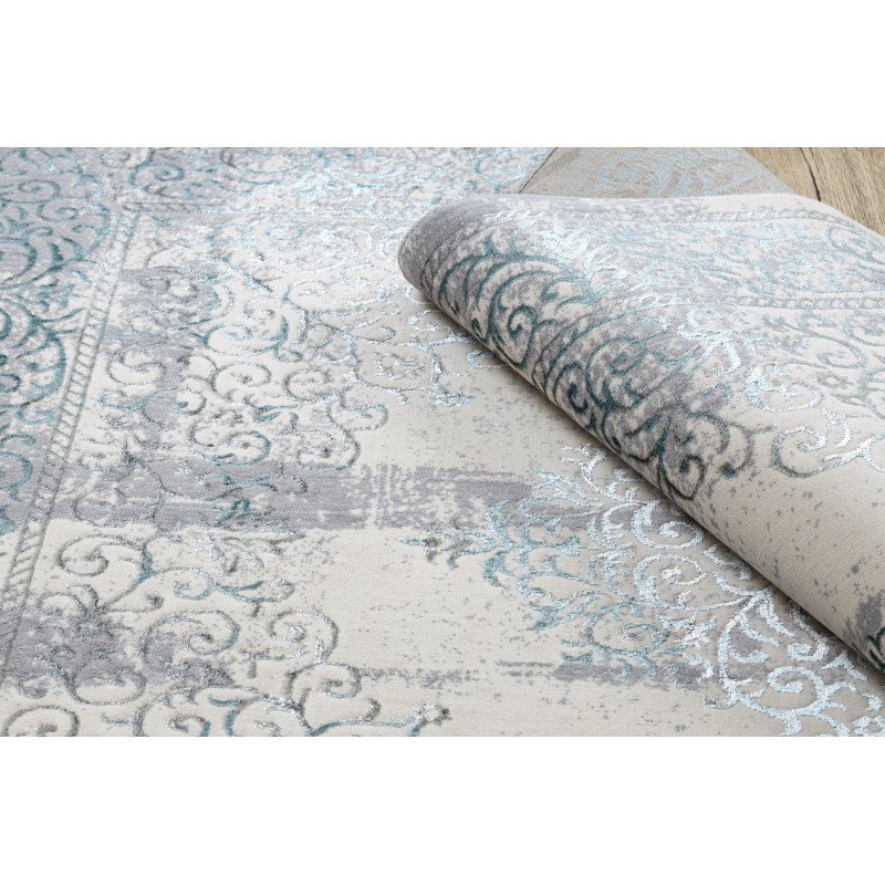 Koberec Core s velmi zajímavý vzorem ve vintage stylu krémově šedé barvě s modrým nádechem. Koberec vytvoří stylový prvek v obývacím pokojí, v předsíní nebo v kanceláři. Příjemný pocit při chůzi na boso a dotyk propůjčuje vyhotovení vlasu ve dvou výškách a použití syntetických materiálů polypropylen a polyester. Tyto materiály jsou vhodné pro alergiky....