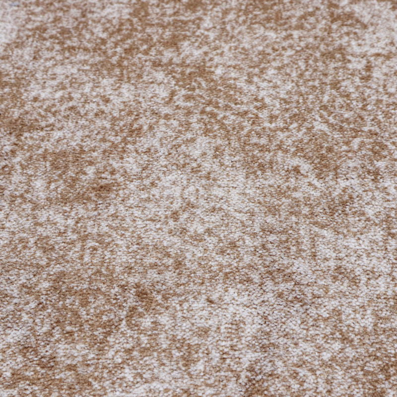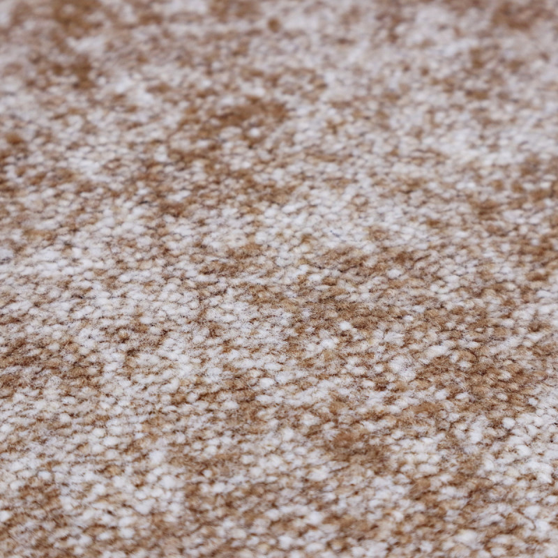 Vintage koberec kombinující různé odstíny béžové a hnědé barvy vypadá, jako by byl odřený nebo poškrábaný. Ale zdání klame! Jedná se o kvalitní kousek se středně vysokým střiženým vlasem z polyesterového vlákna, který krásně doplní každý moderní interiér.
