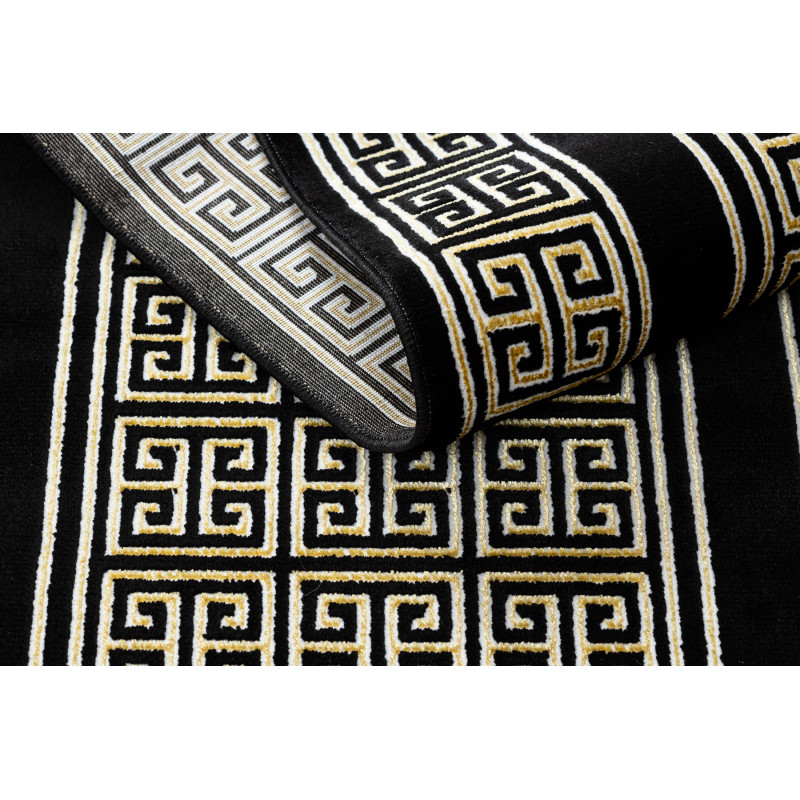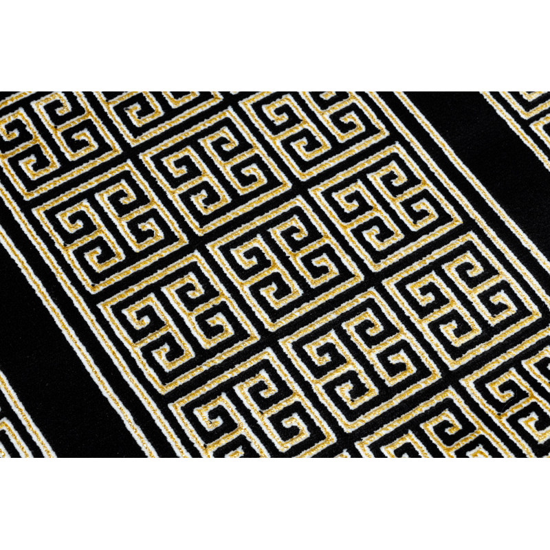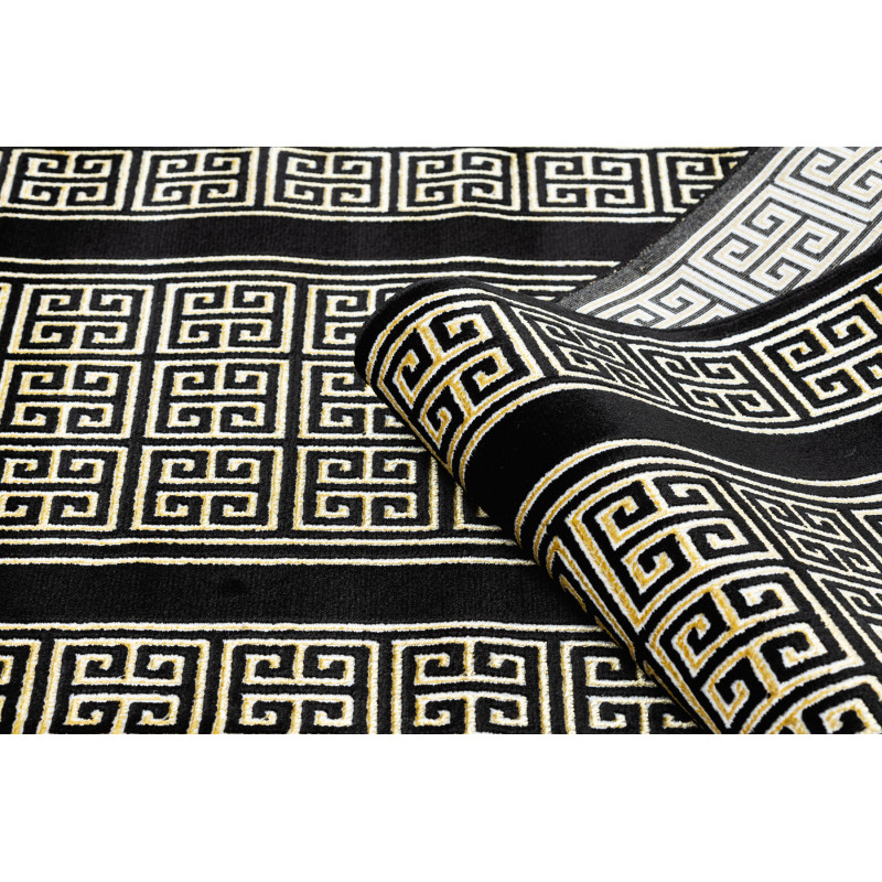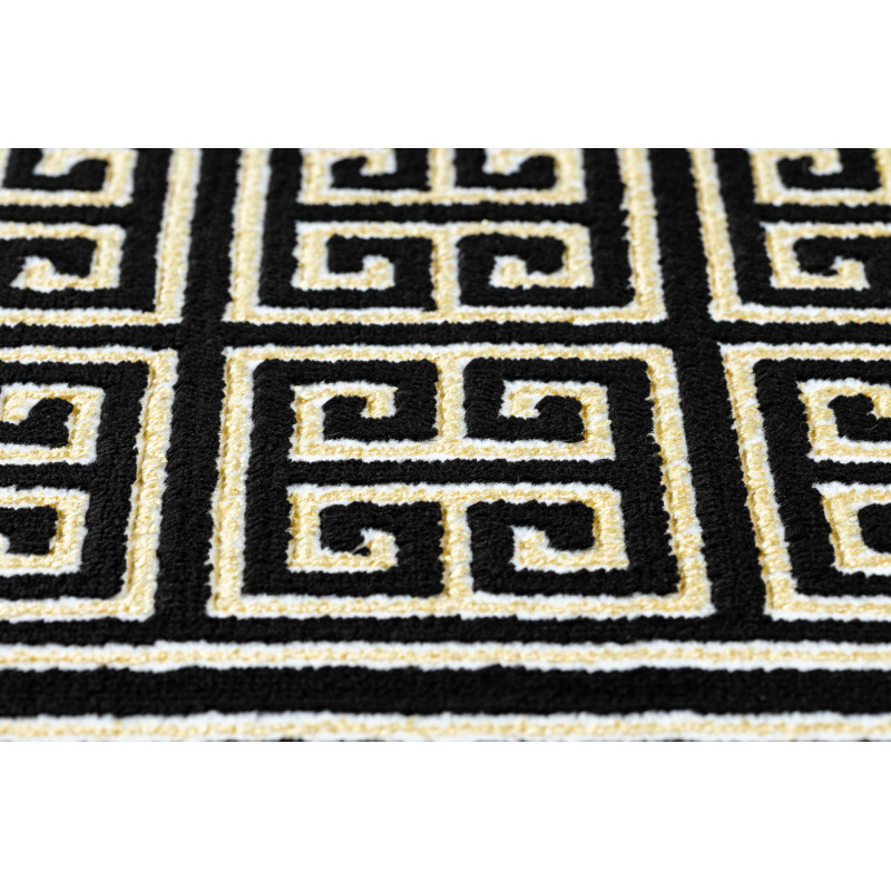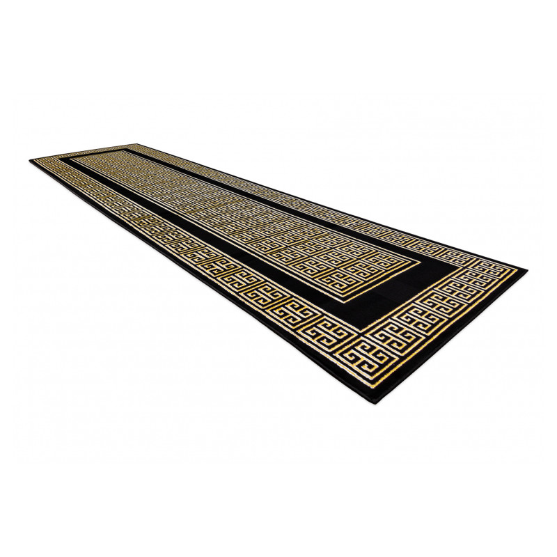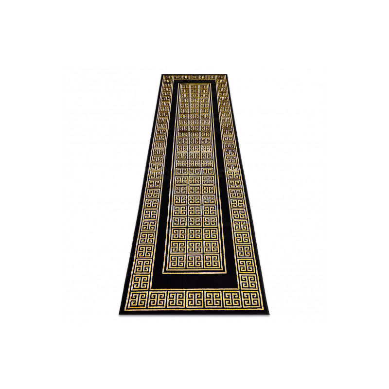 Běhoun Gloss s řeckým motivem v černé barvě se zlatým vzorem. Tento velmi zajímavý a atypický běhoun se stane estetický prvek místnosti. Tento typ běhounu se velmi bude hodit do interiéru s mramorovou dlažbou v moderním stylu. Díky použitému materiálu je běhoun stálý a odolný. Vlákna vlasů jsou tvořeny do 3D efektu, který umocňuje zajímavý vzhled.