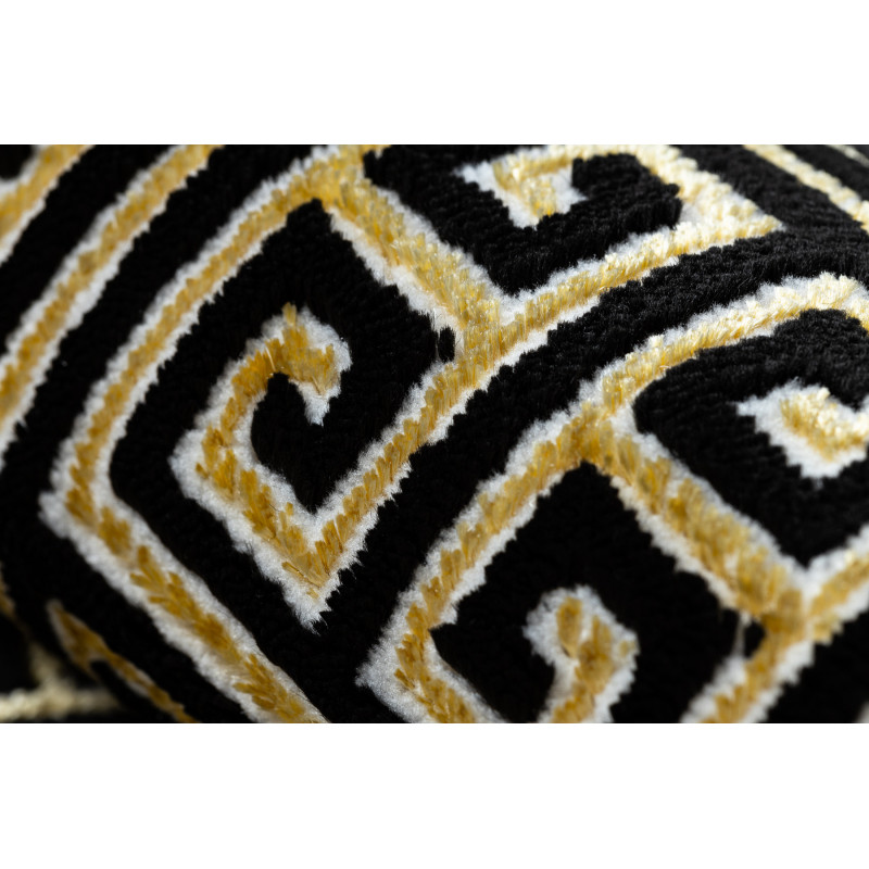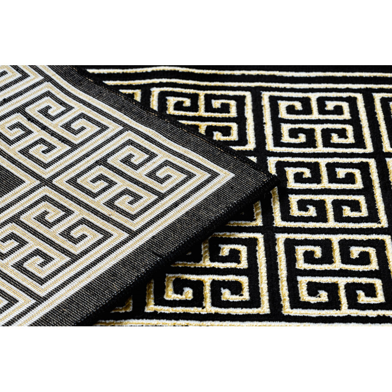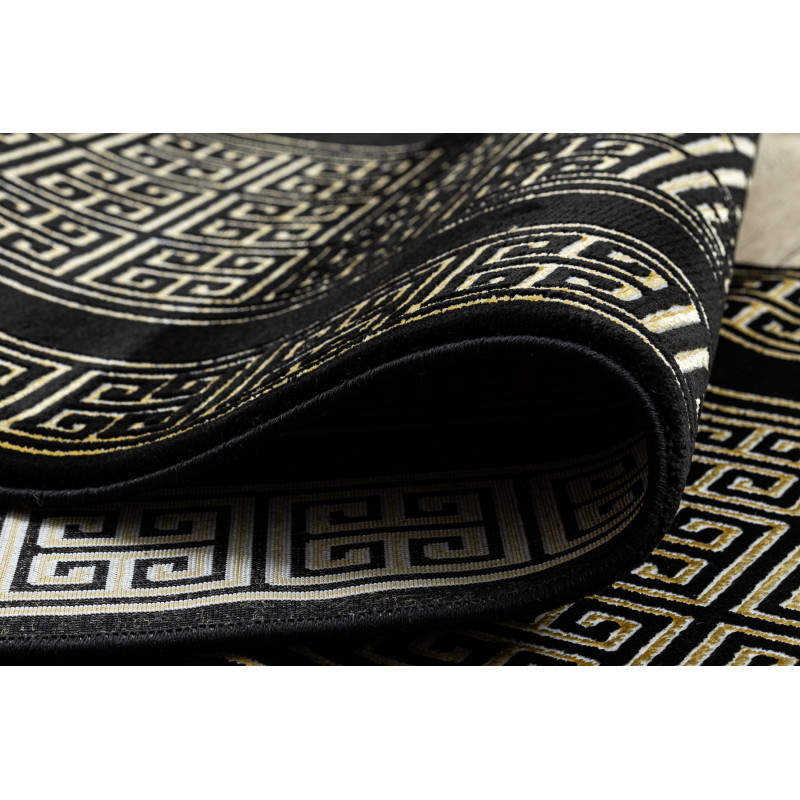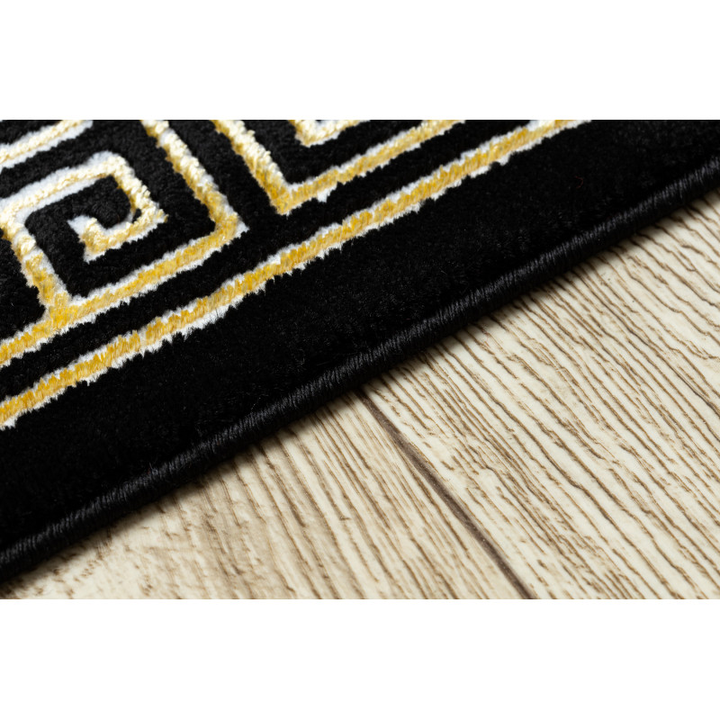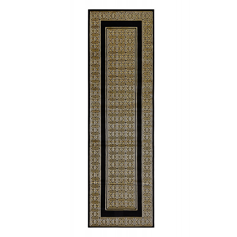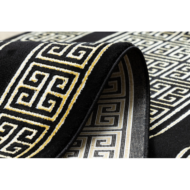 Běhoun Gloss s řeckým motivem v černé barvě se zlatým vzorem. Tento velmi zajímavý a atypický běhoun se stane estetický prvek místnosti. Tento typ běhounu se velmi bude hodit do interiéru s mramorovou dlažbou v moderním stylu. Díky použitému materiálu je běhoun stálý a odolný. Vlákna vlasů jsou tvořeny do 3D efektu, který umocňuje zajímavý vzhled.