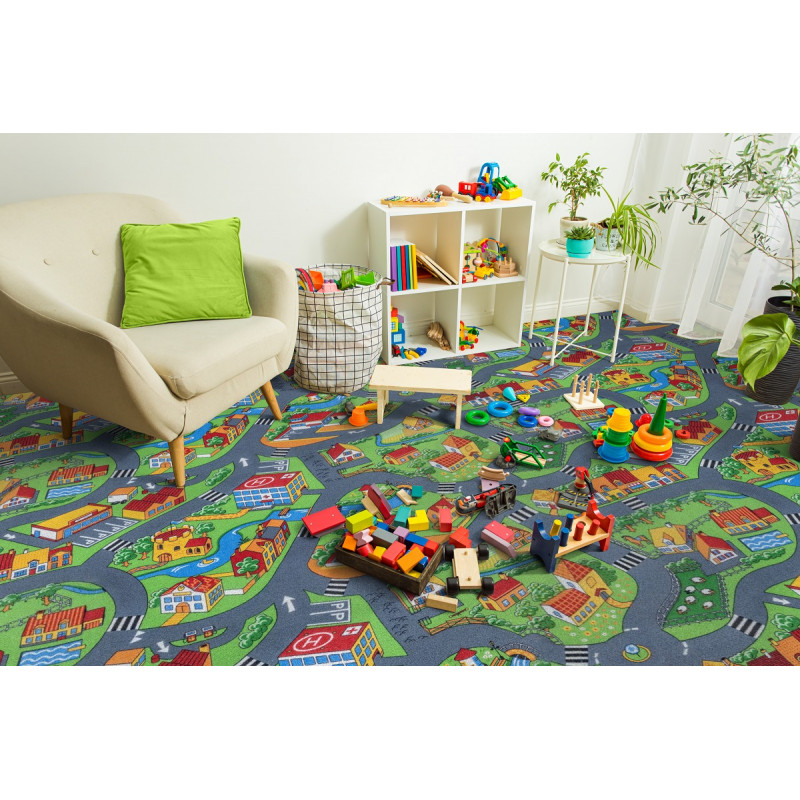 Skvělý dětský metrážový koberec plný silnic, cest, křižovatek, domů i krajiny, který skvěle zabaví každé dítě. Koberec lze položit také na podlahové vytápění. Díky polyamidu, ze kterého je vyrobený, se bude velmi dobře čistit a snadno udržovat. Vaše děti si na něm hodně vyhrají a koberec to všechny vydrží. Kvalitní materiál s vysokou odolností je totiž...