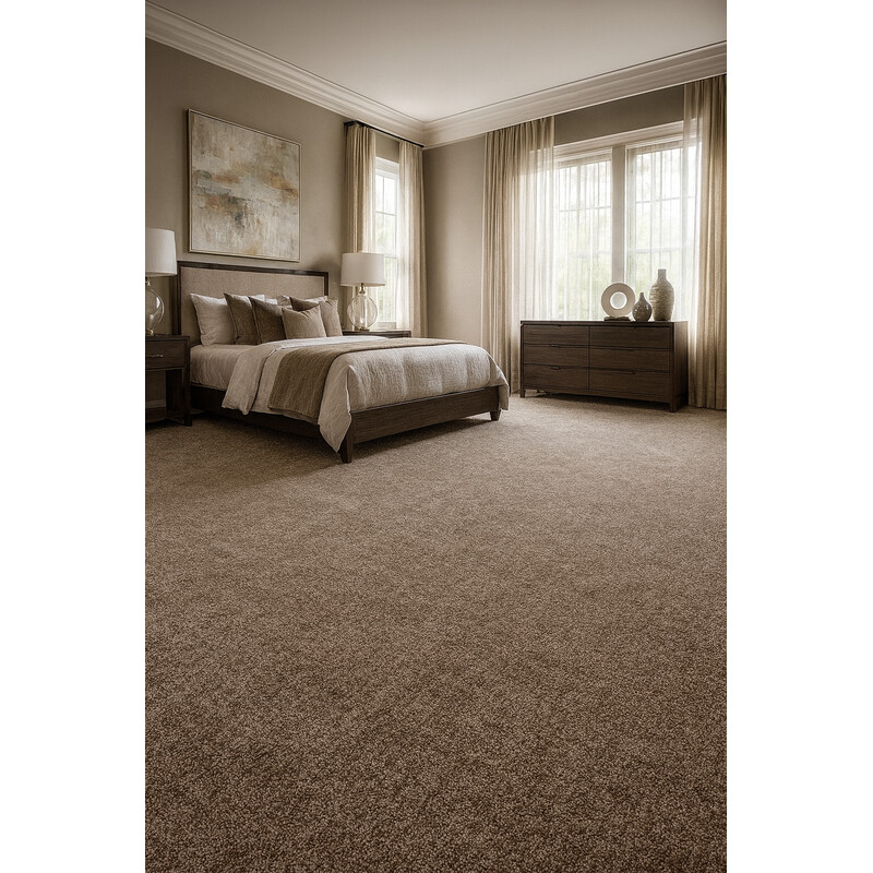 Hnědý bytový koberec v metráži, který Vás potěší kvalitou a extrémní hebkostí - to je metrážový koberec Ferrara 7754. Jedná se o podlahovou krytinu z polyamidu s krátkým střiženým vlasem, což zajišťuje měkký a komfortní došlap. Další výhody přináší podložka na rubové straně, díky které koberec izoluje chlad a tlumí kročejový hluk.