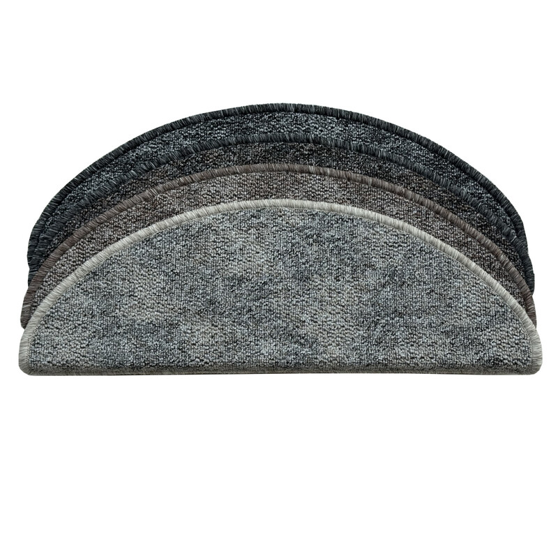 Půlkruhové nášlapy Madrid se vyrábí v České republice ze 100% polypropylenového vlákna. Jedná se o pevné smyčkové koberce, které chrání Vaše schodiště před zbytečným opotřebením. Jsou obšité chemlonem na všech svých stranách a potěší i přítomností lišty pro lepší přichycení.