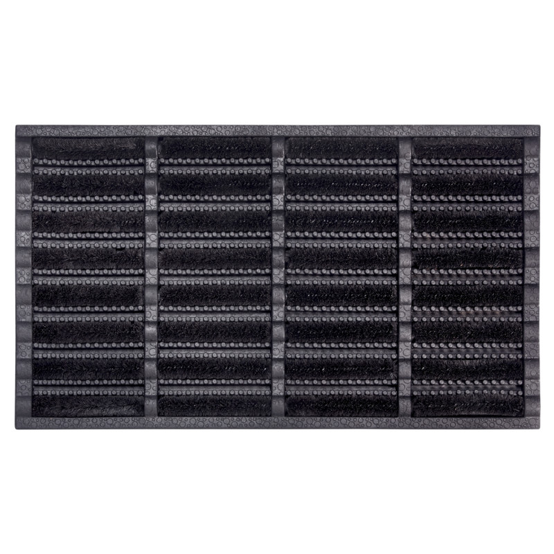 Černá rohožka z kokosového vlákna a gumy je skvělou volbou k venkovním dveřím. Tmavá barva dobře skryje nečistoty, které se navíc z rohožky velmi snadno odstraňují. Stačí ji vyklepat, vysát, vykartáčovat nebo omýt vodou. Díky gumě rohožka neklouže po povrchu, což se hodí nejen na dlažbě.
