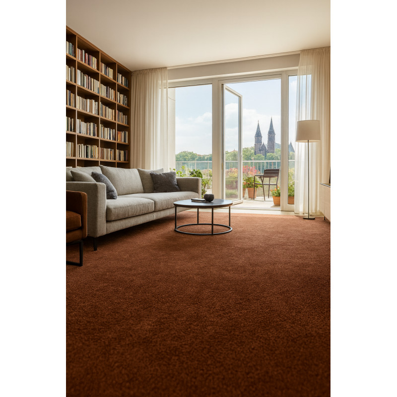 Moderní metrážový koberec z kolekce Dynasty v hnědé barvě. Tento parádní jednobarevný koberec můžete položit také na podlahové vytápění. Koberec je antistatický. Je vhodný do všech středně namáhaných bytových prostorů, kde bude zajímavým doplňkem.