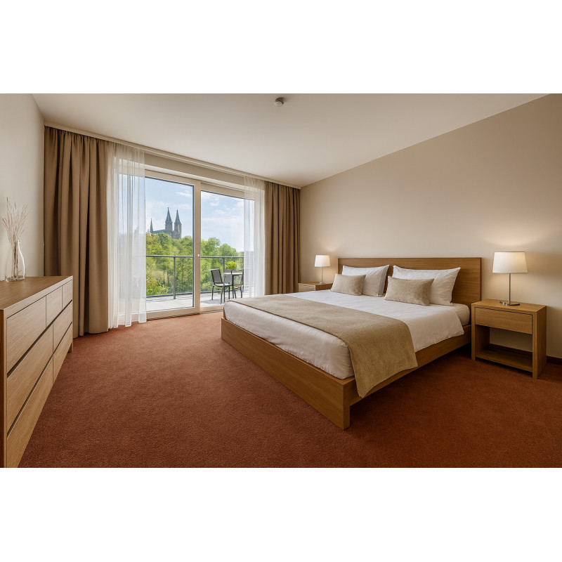 Zlatý koberec s elegantním vzorem listů vyniká nejen svou okouzlující barvou a sofistikovaným designem, ale také odolností vůči opotřebení. Je navržen tak, aby snadno snášel i intenzivní provoz. Kromě toho je kompatibilní s podlahovým vytápěním, což zajišťuje, že vám může poskytovat komfortní teplo i během chladnějších dnů.