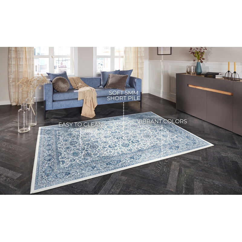 S vintage motivem v modro-krémovém provedení přinese tento koberec do vašeho interiéru nejen stylový nádech, ale i nadčasovou eleganci. Jeho krátký vlas dodává příjemný pocit pod nohama a usnadňuje údržbu, takže si můžete užívat jeho krásu bez starostí. Protiskluzová rubová strana a kompatibilita s robotickými vysavači zajistí, že koberec zůstane na svém...
