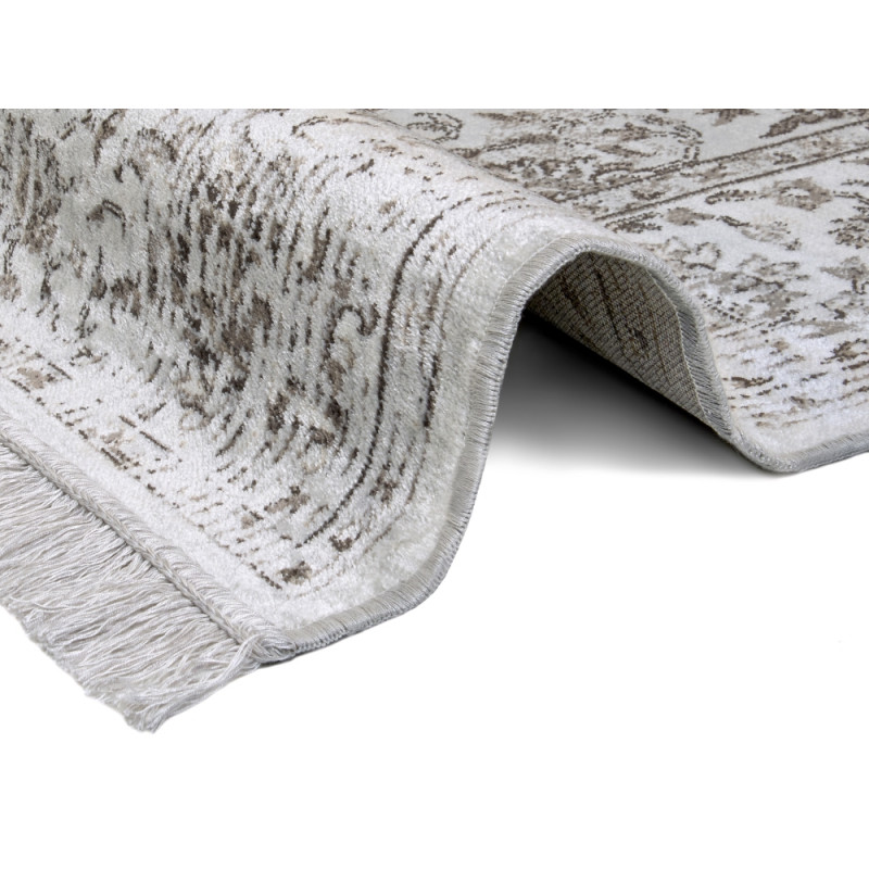 Šedý koberec s medailonem uprostřed je velmi praktický, ať už pro svoji neutrální barvu nebo multifunkční využití. Lze ho totiž použít v domácnosti i exteriéru. Je vyroben z pevného polypropylenu a má velmi krátký vlas. Díky těmto parametrům je odolný a snadno udržitelný. Další výhodou je kompatibilita s podlahovým topením.