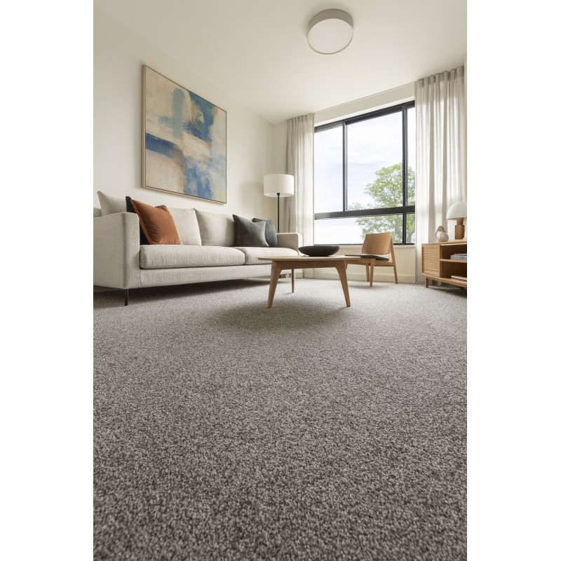 Světle béžový koberec s melírováním dodá komfort a šmrnc každé domácnosti. Nejlépe se hodí do ložnice nebo obývacího pokoje k pohovce, protože jeho velkou předností je hřejivý povrch. Dále dokáže regulovat vlhkost v interiéru, a to díky vlně, ze které je vyroben. Na atraktivitě mu dodává 3D efekt a možnost použít ho z obou stran.