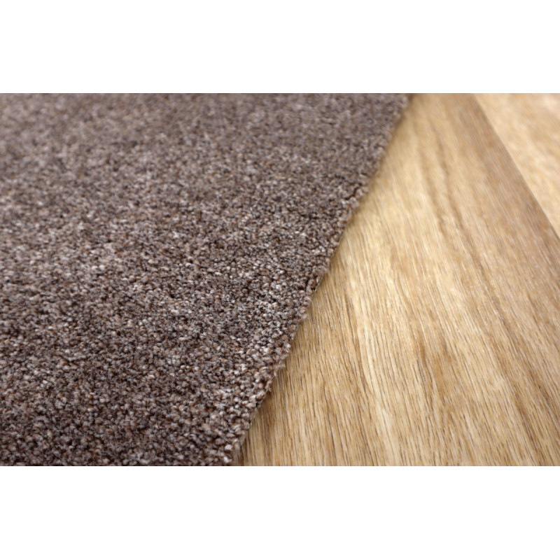 Světle hnědý metrážový koberec Velveti 6953 je vyroben z polyamidu a má krátký střižený vlas. Díky těmto parametrům je pevný, odolný, snadný na údržbu a hebký na dotek. Mezi jeho další přednosti patří kompatibilita s podlahovým topením a kolečkovou židlí. Hodí se do domácností i komerčních interiérů s občasným užíváním.