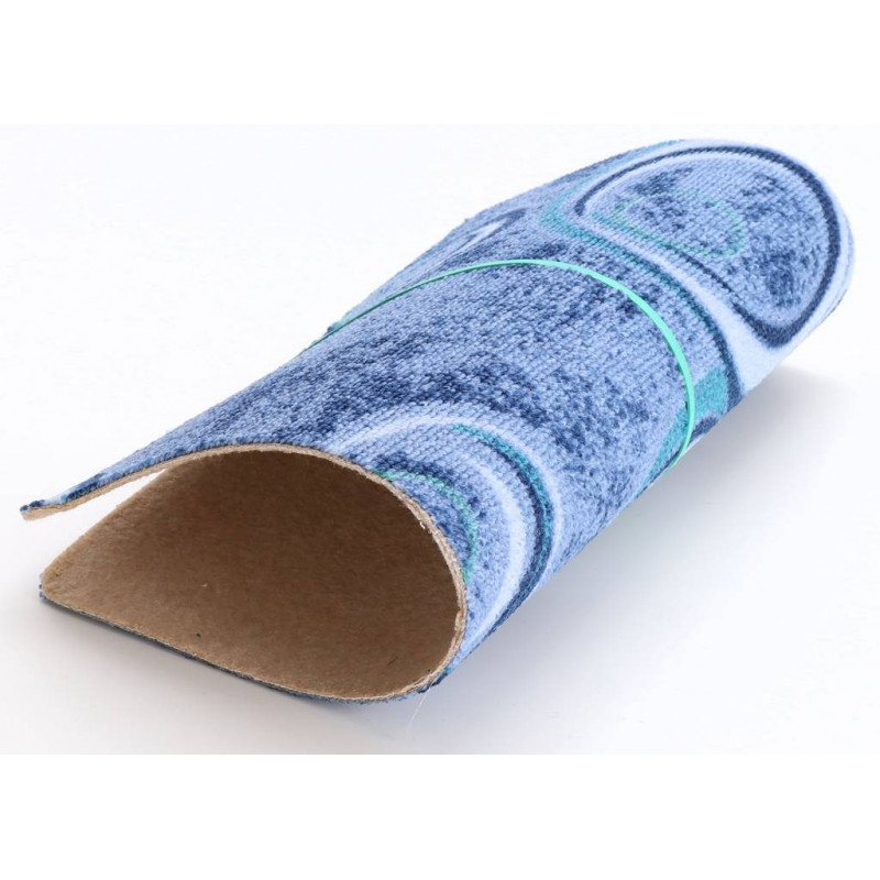 Moderní kusový koberec z barevným potiskem v podobě kruhů v modrých odstínech. Tento metrážový koberec z kolekce Drops působí velice originálně a rozveselí každý prostor. Koberec se bude velice dobře čistit, můžete ho tam bez problému použít i do dětského pokoje. Koberec je také možné položit na podlahové vytápění.