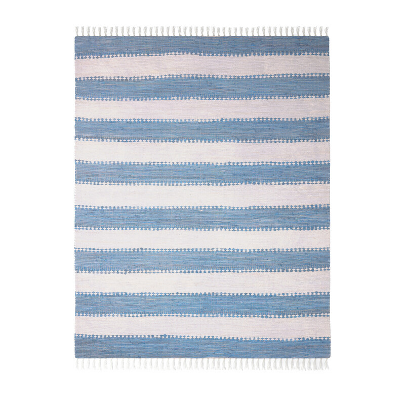 Modrý multifunkční koberec s krásným geometrickým vzorem. Bude slušet každé domácnosti a položit ho můžete i do venkovních prostorů. Jedná se totiž o velmi odolný kousek z pevného polypropylenu. Vysokou odolnost podporuje i krátký vlas. Výhodou je mimo jiné snadná údržba.