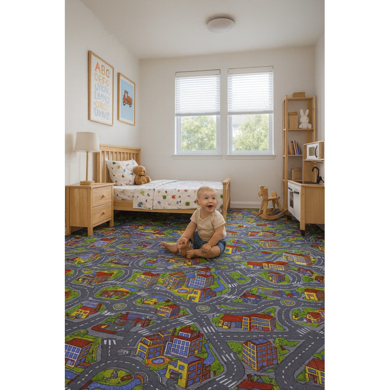 Skvělý dětský metrážový koberec Big City vhodný především do chlapeckého pokoje. Koberec je s motivem silnic a křižovatek a děti si s ním skvěle vyhrají. Koberec je vhodný do místností s podlahovým vytápěním, je velice měkký a antistatický.