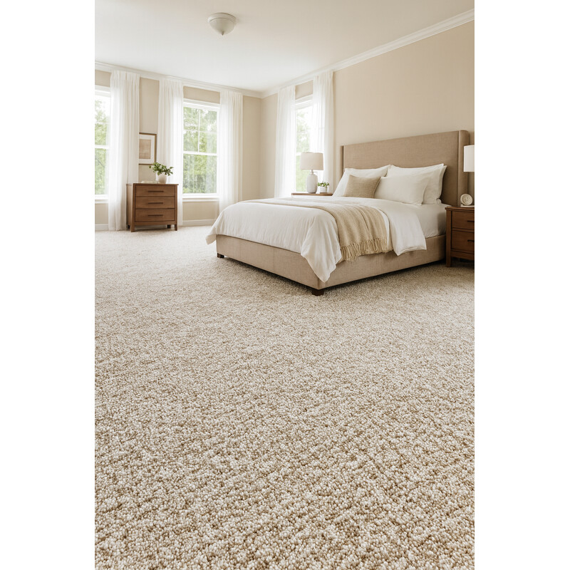 Moderní metrážový koberec z kolekce Dalesman v béžové, provedení. Koberec se hodí do středně namáhaných bytových prostorů a díky světlejší barvě není na koberci hned vidět každé smítko. Koberec je možné bez problémů položit na podlahové vytápění.