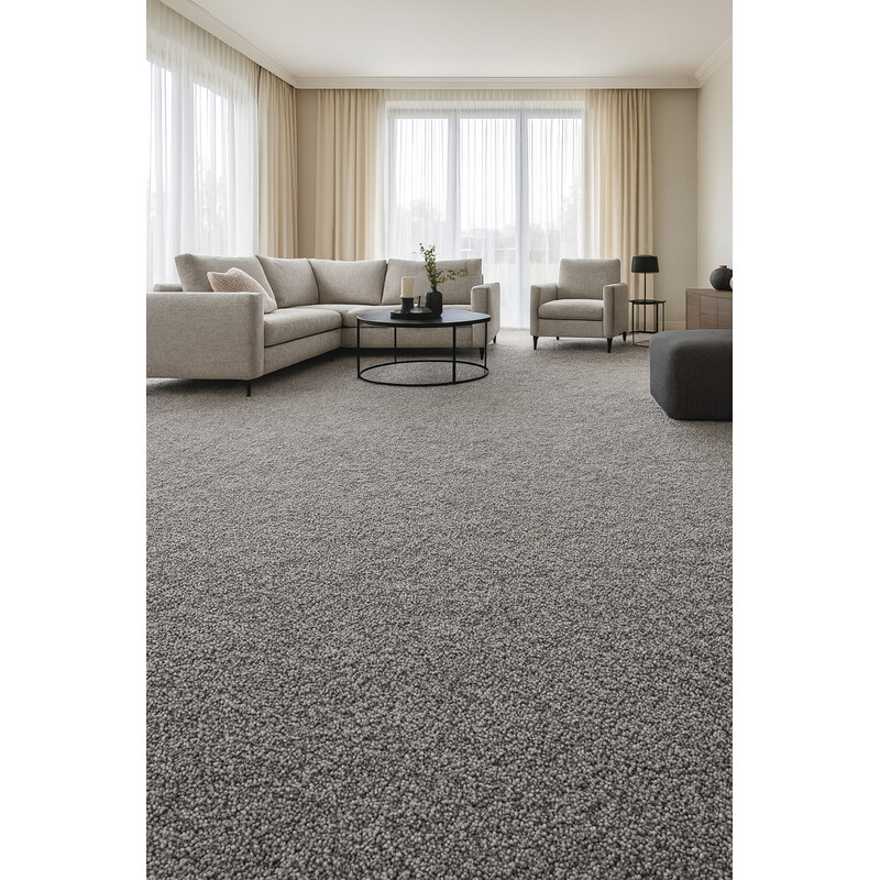 Moderní metrážový koberec z kolekce Sweet šedý navodí velmi elegantní a luxusní atmosféru u vás doma. Struktura koberce tvoří střižený vlas, který je vzájemně kroucený, to propůjčuje koberci měkkost, hebkost na dotek a díky jeho hustotě a filcovému podkladu, snižuje kročejový hluk. Tyto vlastnosti nejvíce využijete v ložnici nebo v pokojích. Koberec je...