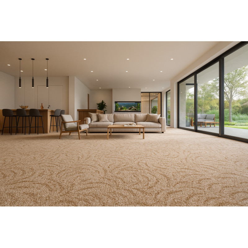 Metrážový koberec Velveti 6923 v béžovém provedení ladí ke každému nábytku. Nejlépe se pro svoji hebkost hodí do ložnice nebo obývacího pokoje, ale položit ho můžete do všech obytných místností i do komerčních interiérů. Také si poradí s mírně zatíženými schody. Mezi jeho další přednosti patří snadná údržba nebo izolace chladu.