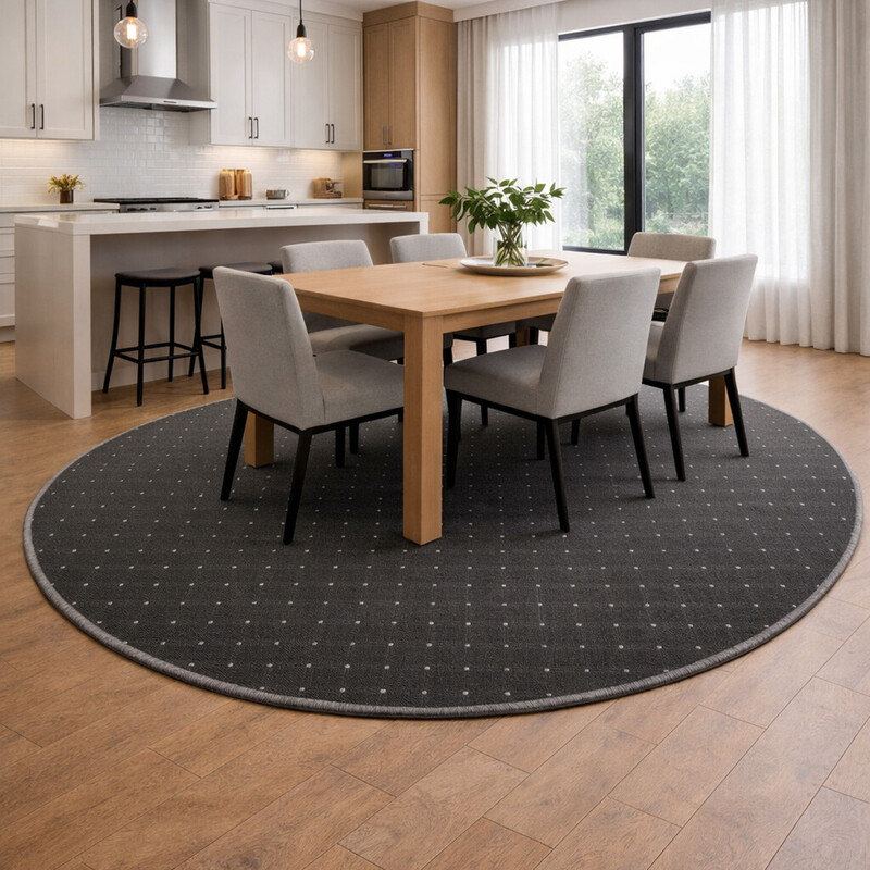 Kruhový koberec Udinese šedý s krátkým smyčkovým vlasem. Smyčka vytvoří kvalitní a velmi odolné tělo koberce, které snese vysokou zátěž, dobře se čistí a udržuje. Obšití po celém obvodě a AB mřížka zajistí stálost koberce. Jednoduchý vzor a barva umožní všestranné využití. Tento koberec je na výběr v mnoha velikostech s možností objednávky na míru.