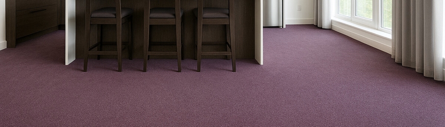 Fialový koberec v metáži se pro své vlastnosti perfektně hodí do komerčních interiérů, jako jsou školy nebo kanceláře. Mezi jeho přednosti totiž patří efektivní útlum kročejového i akustického hluku. Dále je vhodný pro kolečkové židle s tvrdými kolečky. Také je velmi odolný a snadný na údržbu.