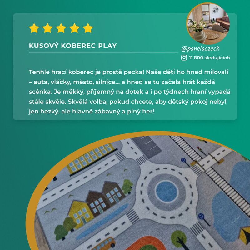Fantastický koberec do dětského pokoje, který potěší kluky i holky. Koberec nemá klasický vlas, ale je vyroben ze 100% polyesteru utkaného do nízkých, pevně utažených smyček, na které je natištěn vzor. Díky tomu se koberec snadno čistí. Polyester je navíc jemný materiál, proto ani smyčkový koberec není tvrdý. Zkrátka ideální koberec na dětské hraní. Pro...