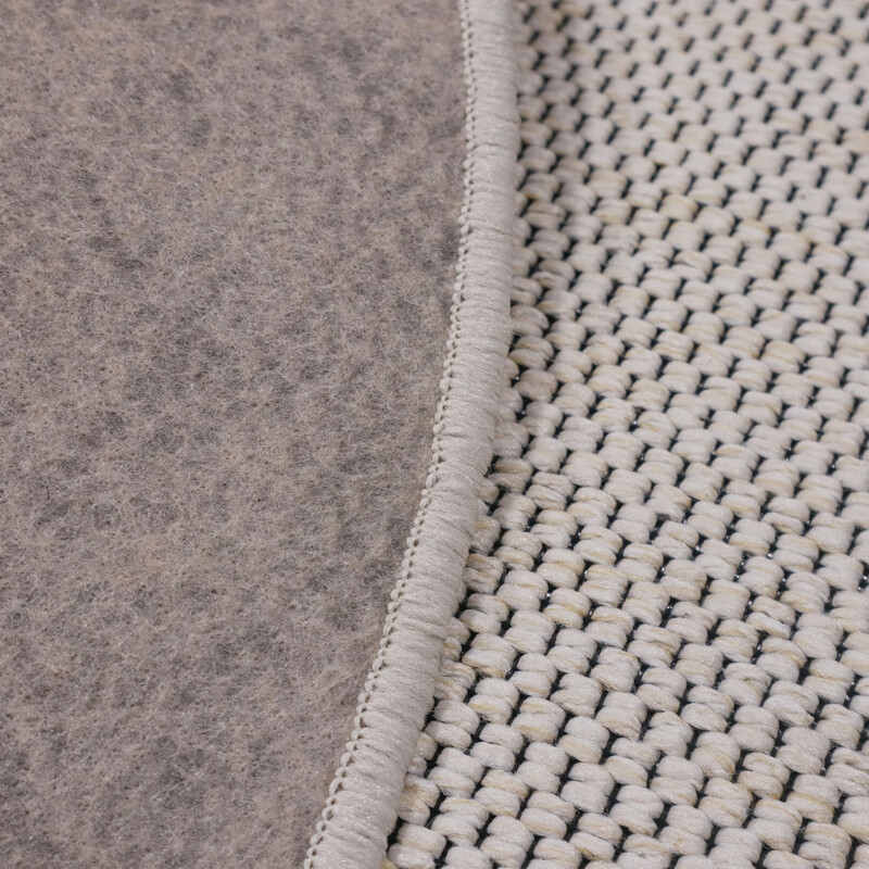 Kulatý kusový koberec Alassio v melírované šedobéžové barvě se vyrábí česká firma Vopi v České republice. Jedná se o smyčkový koberec s kvalitním obšitím po celém obvodu, který potěší příjemnou cenou i snadnou údržbou. Podkladem tohoto koberce je standardní filc. Využití nalezne v celé domácnosti.