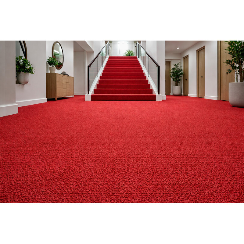 Metrážový koberec Merit new 6782 má hřejivou červenou barvu. Bude mu to slušet v každém komerčním interiéru, ať už se jde o školu, obchodní dům nebo kanceláře. Jedná se o odolnou podlahovou krytinu, která je snadná na údržbu, dobře tlumí hluk a je kompatibilní s kolečkovou židlí.