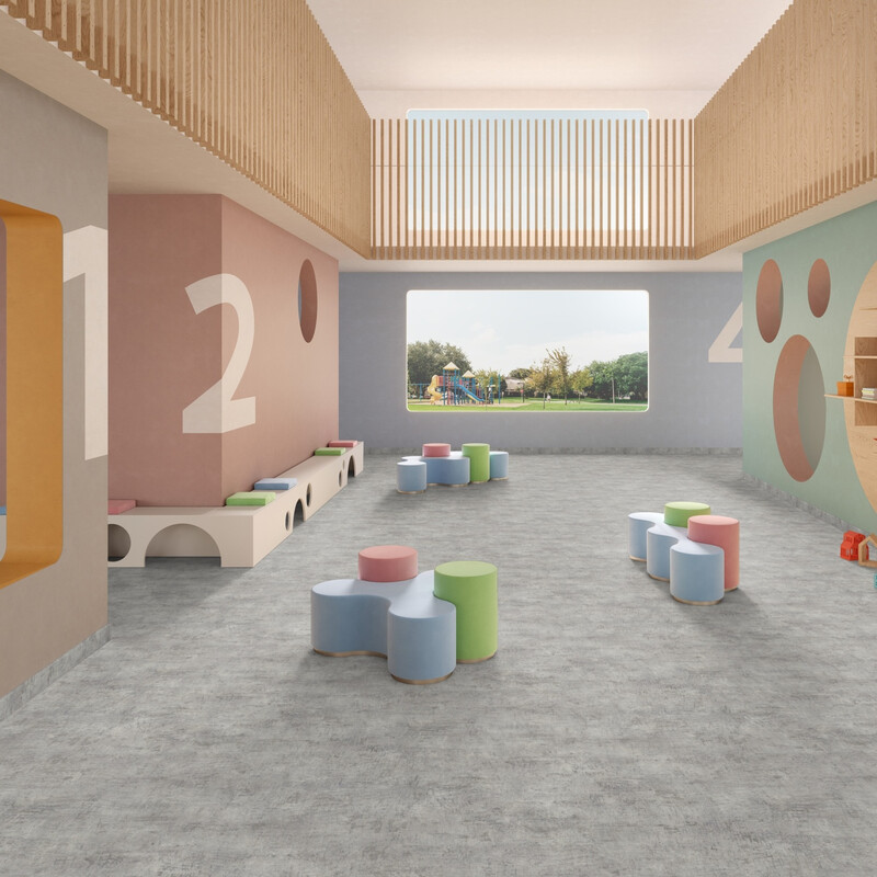 Praktické šedé zátěžové PVC Blacktex Zinc 996D s dekorem betonu je vhodnou volbou do komerčních i bytových prostorů. Nabízí odolnost vůči vyšisování, útlum kročejového hluku či dobrou tepelnou izolaci. Poradí si s vytápěnými podlahami i s kolečkovými židlemi.