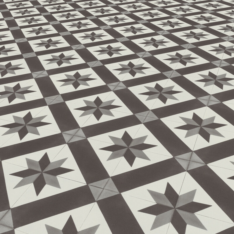 PVC AladinTex Ultra Cordoba black/white je podlaha, která se nebojí být středem pozornosti. Černobílý vzor hvězd a čtverců působí jako mozaika, kterou by klidně mohl navrhnout andaluský mistr dlaždič, jen s tím rozdílem, že tuhle krásu zvládnete položit raz dva. Každý detail působí promyšleně, kontrastní barvy dávají prostoru rytmus, symetrie zase klid a...