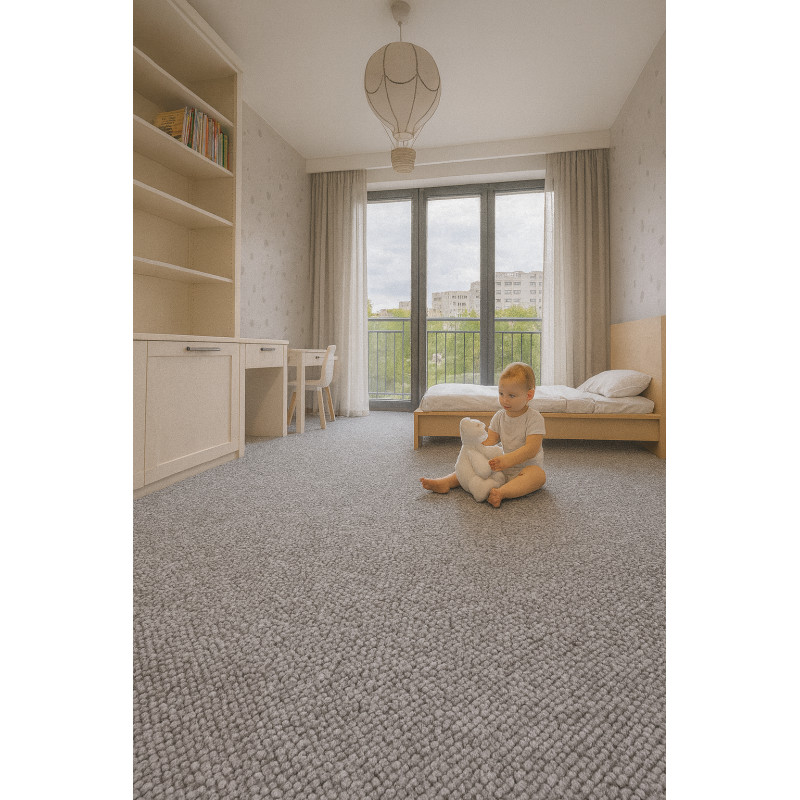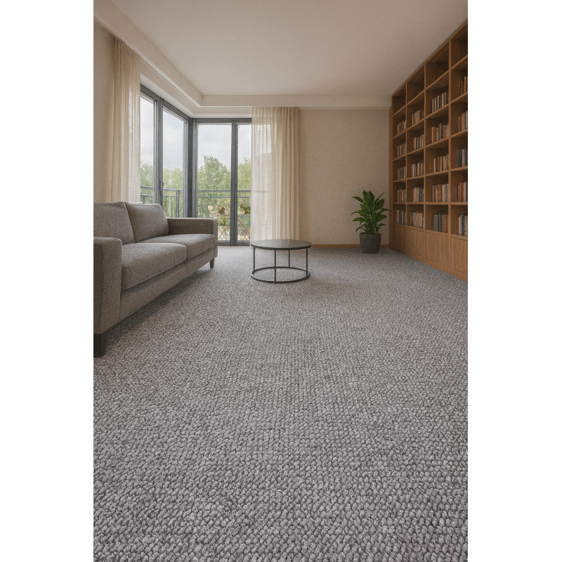 Metrážový koberec Wolly s velmi příjemnou univerzální šedou barvou, která zapadne do jakéhokoliv interiéru. Koberec Wolly se vyznačuje vysokým smyčkovým vlasem, který zajišťuje jemný a příjemný pocit na dotek. Díky výrobě ze 100% polypropylenu je odolný a snadno se udržuje, což ho činí ideálním pro každodenní použití. Světle béžový odstín koberce je...