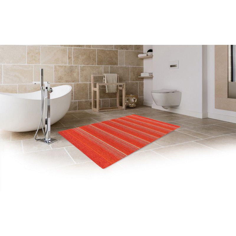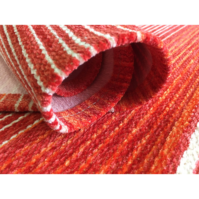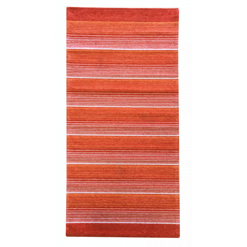 Běhounek Laos z příjemného materiálu ve výrazné oranžové barvě byl vyroben v Egyptě. Výroba probíhá částečně ručně. Běhoun je vybaven protiskluzovým rubem, proto jej můžete bez obav umístit na na jakoukoliv podlahovou krytinu, ať už klouže sebevíc. Jedná se o novinku, která je předurčena pro použití v celém domě, včetně kuchyně. Běhoun lze prát v ruce.