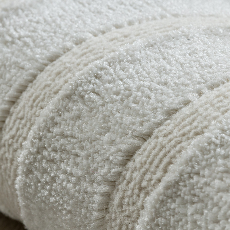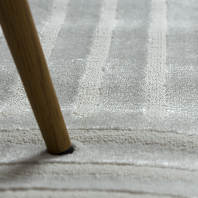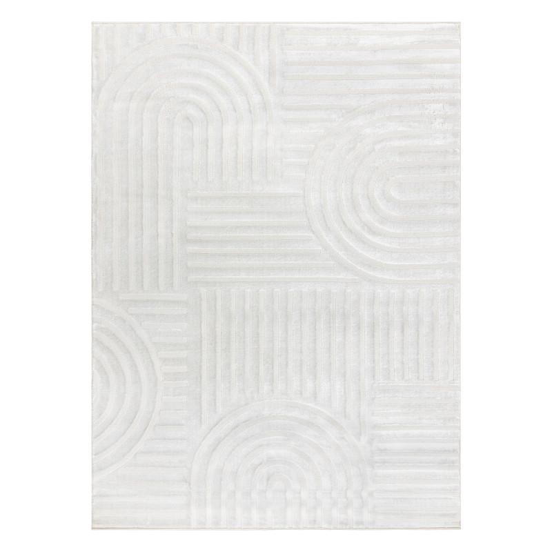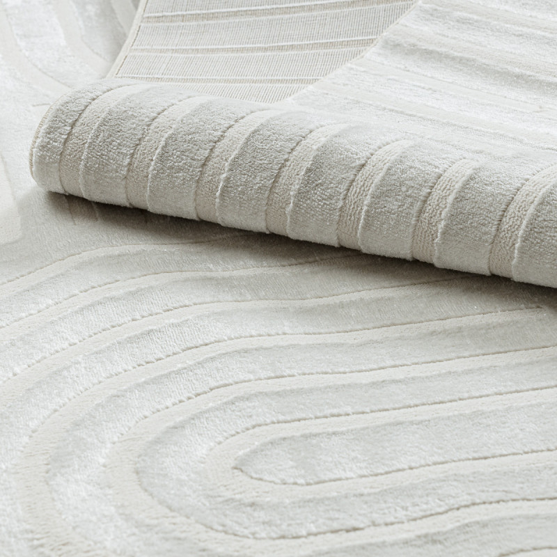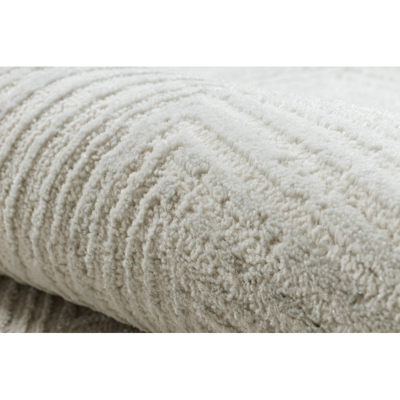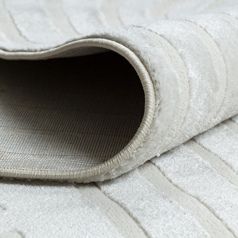Krémově bílý až béžový koberec s fascinujícím 3D vzorem přidá do každého prostoru sofistikovaný nádech a vizuální hloubku. Jeho jemný povrch je příjemný na dotek, zatímco nízký vlas usnadňuje údržbu, zejména díky kompatibilitě s robotickými vysavači. Certifikát Oeko-Tex pak zajišťuje, že je tento elegantní koberec bezpečný a ekologicky šetrný.