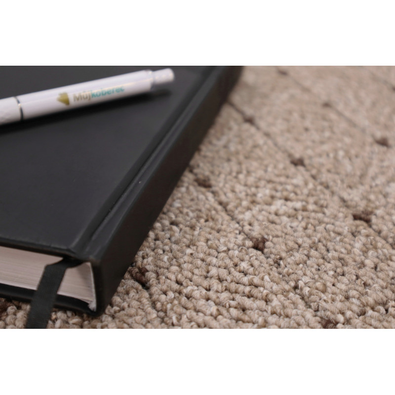 Koberec Practica A5 BDB nabízí oblíbený moderní geometrický vzor v hnědých a béžových odstínech. Tyto barvy jsou velmi oblíbené a navíc za velice dobrou cenu. Koberec má krátký vlas typu BCF, který vyniká odolností vůči mechanickému poškození. Navíc je velmi snadné jeho čištění například v případě nešťastného polití tekutinou.